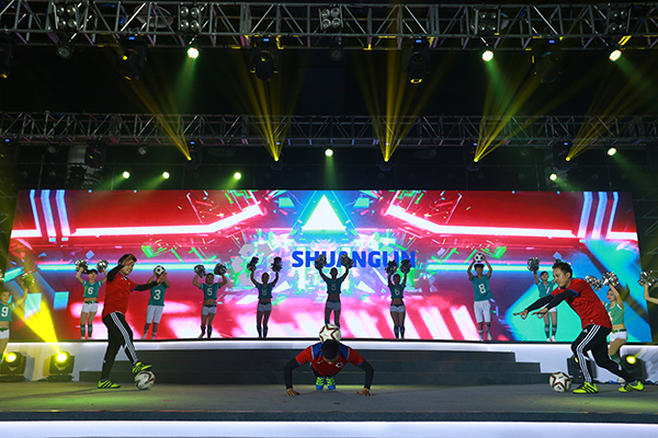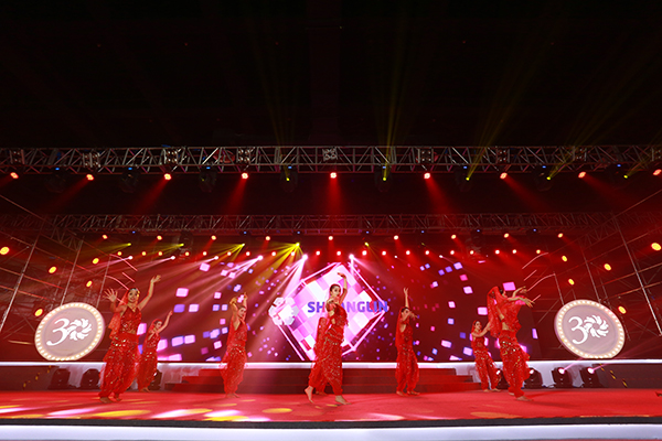 庆典晚会自然少不了精彩的节目,这次庆典,邀请了双林旗下所有单位的代表出席。各单位联合排演的节目,精彩夺目。《快乐足球》节目中,来自双林的足球宝贝和双林足球俱乐部的巨星们,将舞蹈与足球完美结合。《歌舞串烧》中,集团、职校、山东德洋、饰件、机电事业部的同仁们,将西藏的热情奔放、江南的婉约动人、印度的异域风情、流行金曲的时尚魅力巧妙串联,摇曳生姿,余音绕梁,双林人的风采在节目中淋漓尽致的展现了出来。
